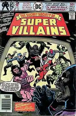 Secret Society of Super Villains (SSoSV) is a DC Comics title that debuted in May–June 1976. The series presented a group of DC's supervillains, mostly foes of the Justice League of America.[1] The series was cancelled with issue #15 in July 1978, as part of the DC Implosion, a period when DC suddenly cancelled dozens of comics.[2]