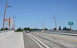 The Sellwood Bridge is a deck arch bridge that spans the Willamette River in Portland, Oregon, in the United States. The current bridge opened in 2016[2] and replaced a 1925 span that had carried the same name. The original bridge was Portland's first fixed-span bridge and, being the only river crossing for miles in each direction, the busiest two-lane bridge in Oregon.[1]
