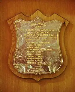 Commemorative plaque recording the opening of the King's Norton Union's Infirmary at Selly Oak, on the "3rd Day of September 1897"