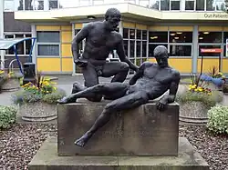 The Good Samaritan (1961), by Uli Nimptsch, in front of the Out-patients Unit at Selly Oak Hospital