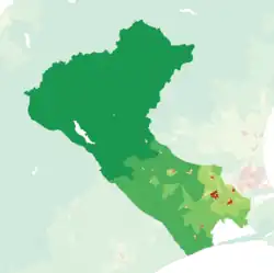The Selwyn District has six towns with a population over 1,000. Together they are home to 69.6% of the district's population.[2]