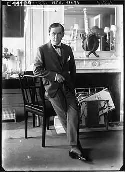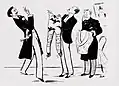 After the war, Goursat returned to the kind of caricatures that made him famous. In 1919, he published Le Grand Monde à l'envers (High Society Upside Down).[25] Around 1923, he published three albums under the general title of Le Nouveau Monde (transl. The New World).[26] In 1923, he became an officer of the Légion d'honneur.[27]