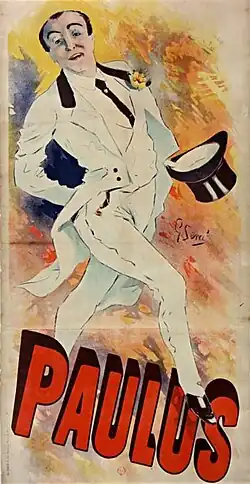 During the same period, he made trips to Paris. In 1891, he designed two posters printed in Jules Chéret's workshop for the singer Paulus.[12] He published his first caricatures of artists in L'Illustration (Albert Brasseur) and Le Rire (Paulus, Polin and Yvette Guilbert[i. 1]).[12]