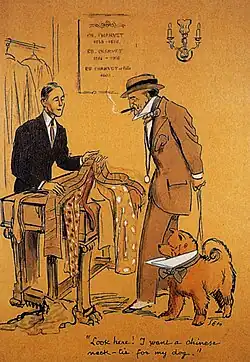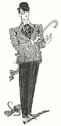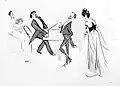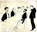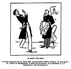 He chose horse racing[i. 3] as a way to enter high society.[16] In June 1900 he self-published his new album Le Turf of caricatures of many prominent Parisian socialites, including Marquess Boni de Castellane, Prince Trubetskoy, Count Clermont-Tonnerre, Baron Alphonse, Gustave de Rothschild, and Polaire.[16] The album's success made him famous overnight.[17] In October 1900 he published the album Paris-Trouville with equal success. Goursat published nine other albums before 1913.[18]