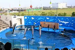 The facility is a two-story building with 100 fish tanks. Inside there is a dolphin and sea lion show pool that can accommodate about 1,000 people.[12]