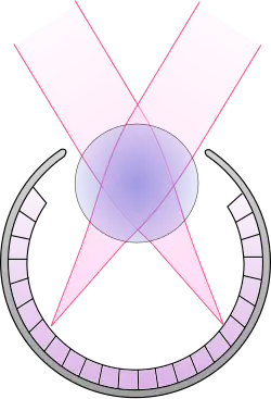 In terrestrial pulmonate gastropods, eye spots are present at the tips of the tentacles in the Stylommatophora or at the base of the tentacles in the Basommatophora. These eye spots range from simple ocelli that cannot project an image (simply distinguishing light and dark), to more complex pit and even lens eyes.[6] Vision is not the most important requirement in terrestrial gastropods, because they are mainly nocturnal animals.[1]