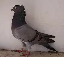 - Small to medium compact pigeon with flat vertical crest. Stance to be at a 45 degree angle. Lively appearance as if ready to fly.