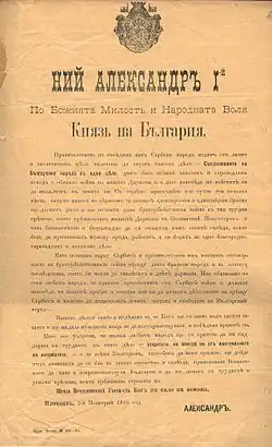 Manifesto of Knyaz Alexander of Bulgaria declaring the Serbo-Bulgarian War on 2 November 1885 (O. S.)