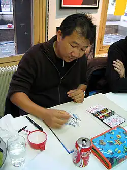 ![]() Serge Huo-Chao-Si drawing, Librairie Nation, Paris | |