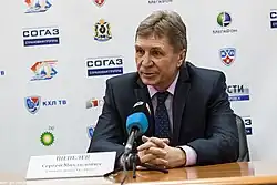 Sergei Mikhailovich Shepelev (Russian: Сергей Михайлович Шепелев; born October 13, 1955, in Nizhny Tagil, Soviet Union) is a retired ice hockey player who played in the Soviet Hockey League. He played left wing for HC Spartak Moscow. Internationally, he was a member of the USSR national ice hockey team that won the 1981 Canada Cup and the gold medal at the 1984 Winter Olympics in Sarajevo. He was named to the 1981 Canada Cup All-Star Team. He was inducted into the Russian and Soviet Hockey Hall of Fame in 1981.