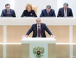 Sobyanin is a member of the ruling United Russia political party, and is elected to its higher governing bodies,[2] current member of presidium of Regional Council of the United Russia in Moscow[3] and the head (political council secretary) of the party's Moscow branch from March 2011 to December 2012.[2][4]