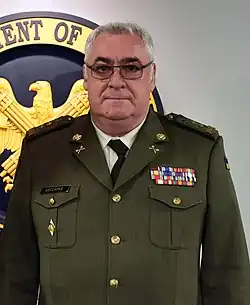 Serhiy Borysovych Bessarab (Ukrainian: Сергій Борисович Бессараб, IPA: [serˈɦij boˈrɪsowɪdʒ besːɐˈrɑb]; born 13 November 1955) is a Soviet and Ukrainian lieutenant general.[2] He served as a troop commander of the Territorial Directorate "North" (2005–2007), the First Deputy Commander of the Ukrainian Ground Forces (2012–2015), and the Deputy Chief of the General Staff of the Ukrainian Armed Forces (2015–2020). On 4 March 2020, he was appointed as the Minister for Veterans Affairs of Ukraine in the Shmyhal Government.[2] He resigned due to ill health on 16 December 2020.[3]
