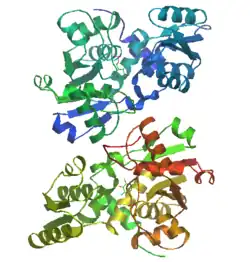 In humans, the serine racemase protein is encoded by the SRR gene.[7] Serine racemase may have evolved from L-threo-hydroxyaspartate (L-THA) eliminase and served as the precursor to aspartate racemase.[8]