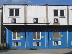 Construction trailers from the Swedish construction company Serneke in Lund, Sweden.