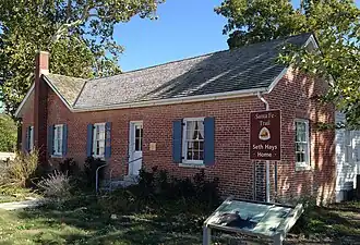 The Seth Hays House is a historic house at 203 Wood Street in Council Grove, Kansas. Seth Hays, the first white settler in Council Grove, built the house in 1867.[2] A Missouri native, Hays originally moved to Council Grove to start a trading post for Boone & Hamilton; he eventually owned the trading post himself, and he also started a local newspaper and the town's first bank. The house was Hays' third in Council Grove; he built a log cabin for himself in 1847, the year he settled in Council Grove, and moved to a brick dwelling in 1860. The 1867 house is a one-story vernacular brick building with an L-shaped plan. While living in Missouri, Hays enslaved a woman named Sarah Taylor, also known as Aunt Sallie. After Kansas became a state and abolished slavery in 1861, she stayed with Hays as a servant, and she lived in the house's basement.[3]