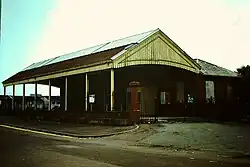 The railway reached Severn Beach in 1900, but was at first used only for goods traffic to Pilning. A platform was built beside the line at Severn Beach by the Great Western Railway in 1922, and a bay platform added to the west for excursion traffic, with terminating passenger services from Bristol starting on 26 May 1924, subsequently extended to Pilning in a loop back to Bristol via Patchway from 9 July 1928.[1] By 1924 a brick concourse had been built perpendicular to the bay platform, providing a ticket office, the station master's office, toilets and a ladies' waiting room. The station master and keeper of the level crossing were also provided with houses, while to the east of the platform were sidings, primarily for stabling of excursion trains.