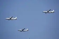 A KJ-200 airborne early warning and control plane, left, a Y-8J radar plane, center, and a Y-9JB radar plane, right, fly in formation during a parade commemorating the 70th anniversary of Japan's surrender during World War II in Beijing, Sept. 3, 2015.