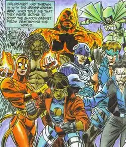 Star Chamber is a rogue faction which disagrees with Dharma; all its operatives have defected from the main group. Star Chamber also included several new recruits: Holocaust, Harm, Rocket and Xombi, although all of them left the group during the Shadow War.