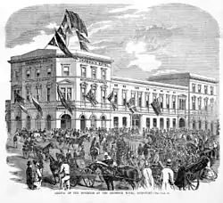 The hotel's patronage had grown quickly with the booming goldfields and it was renamed "The Shamrock" in 1855. The same year the Theatre Royal hosted Lola Montez performing for the diggers who threw gold nuggets at her feet, many of which the Shamrock staff took as tips while cleaning. The Bendigo Shakespeare and Literary Society also performed at the theatre from 1861.[2]