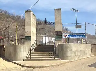 Less than a century ago, Sharpsburg was divided into two sections because of a railroad track that went through the location where Kennedy Park currently sits. There were two fire departments, one on each side of the tracks. There were two schools on each side of the track as well, one "up street" and one "down street". Once the railroad tracks weren’t used anymore, the railcars sat vacant on the tracks. The Junior Chamber of Commerce in Sharpsburg went to the railroad company as well as the Heinz family to try to change something about this. The Heinz family said they would help build a park if it was used for recreation purposes only. The park was built around the time when President John F. Kennedy was assassinated, and that is why the area was named Kennedy Park.