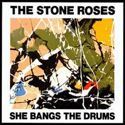 "She Bangs the Drums" is a song by English rock band the Stone Roses. The song was released as the second single from their eponymous debut album (1989). It was released in the UK, Japan, and Germany. The single was their first Top 40 hit, peaking at number 36 on the UK Singles Chart in July 1989.[5] A reissue in March 1990 improved by two places.