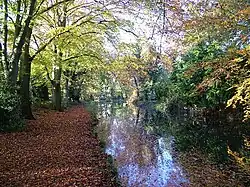 The Basingstoke Canal and the Rive Ditch are the only water features in the neighbourhood. There is just one lock on the Sheerwater section of the canal, just west of Sheerwater Road. The Rive Ditch enters Sheerwater at Monument Road and leaves at Sheerwater Road, it roughly follows the path of Albert Drive but has been routed completely underground since the area was developed in the 1950s.