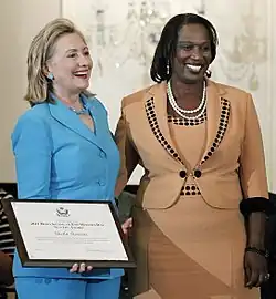 Sheila Roseau received the 2011 Hero Acting to End Modern Day Slavery Award by US Secretary of State Hillary Clinton at the State Department in Washington, D.C.