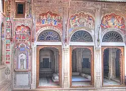 The region of Shekhawati in Rajasthan is remarkable for its wealth of mural paintings which adorn the walls of many buildings, including havelis.