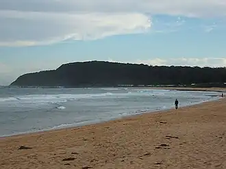 Shelly Beach on a windy day in 2010, taken from the sand dunes. Crackneck Lookout in the background. | |||||||||||||||