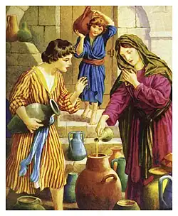 It is used for anointing oil in conjunction with Bethel and other sites that were "anointed" in the narrative of Jacob's Ladder and subsequent second visit to Bethel (Genesis 35:9–15).[7][8] It is one of the offerings God demands of the Israelites for the Tabernacle in Exodus 25:3–8 in the context of spices to be used to make anointing oil and incense, as well as for use in lamps.[7] It is also used in the context of offerings in Micah 6:7: "Will the Lord be pleased with thousands of rams, With ten thousands of rivers of oil? Shall I give my first born for my transgression, The fruit of my body for the sin of my soul?"[9]
