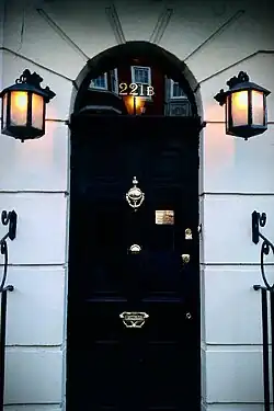 ![]() The exterior of the Sherlock Holmes Museum and doorway marked as 221B | |