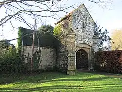 The moated manor house (TQ 211 189) was built by Thomas Peverel during the reign of Edward I. Only the early 14th-century gatehouse, with a porters lodge attached survives. A room over the gateway has a cross shaped loop window. Ewhurst manor occupied the western third of Shermanbury parish. The existence of a deer park at Ewhurst was recorded in 1274, during the 14th century, and in 1538.[14]