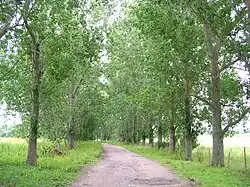 The avenue of trees leading to the church | |