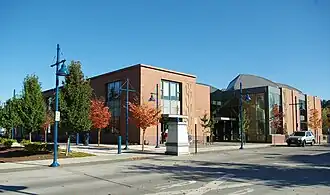 Sherwood is within the Tri-County Metropolitan Transportation District of Oregon (TriMet),[17] the Portland metropolitan area's primary transit agency. TriMet bus lines 94 and 97 provide service to Sherwood; line 94 is an express route running through to downtown Portland.[18] Additionally, the Yamhill County Transit Area's routes 44, 45x and 46s connect Sherwood with Newberg, McMinnville, and other points in Yamhill County,[19] which are outside the boundaries of the TriMet district.