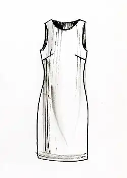 A shift dress is a dress in which the cloth falls straight from the shoulders and has darts around the bust. It frequently features a high scoop or boat neck.[3] The shift dress is often confused with the sheath dress, which is form-fitting and shaped by tucks on the waist area. Shift dresses became popular in western fashion in the 1920s and were revived in the 1960s.