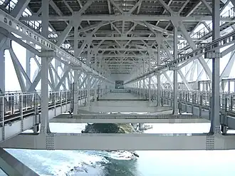It was envisaged that the Awaji Island would be passed between Honshu and Shikoku, and for this reason the Onaruto Bridge was designed as a combined road and railway bridge. However, the Akashi Kaikyo Bridge, which was later constructed, was changed to a road-only bridge, and it became necessary to excavate a separate undersea tunnel through the Akashi Strait or Kitan Strait to allow railway traffic. The Japan Railway Construction, Transport and Technology Agency conducted a survey of the topography and geology of both straits, but budget execution was suspended in fiscal 2008. In addition, a bridge or undersea tunnel (Hoyo Strait Route) is required over the Hoyo Strait to reach Ōita City from Shikoku. The estimated project cost of the Shikoku Shinkansen (Case 1), which requires the construction of a bridge or undersea tunnel over the Akashi Strait, Kitan Strait or Hoyo Strait, is estimated at 4.02 trillion yen.[6]