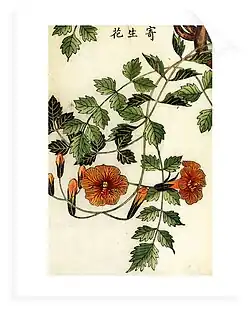 Shimada Mitsufusa (島田 充房) was an 18th-century Japanese botanical illustrator best known for his work, Ka-i 花彙, portraying Japanese flora with 200 woodcut plates in 8 volumes. The first volume was published in Edo in 1759, but after completing the second volume Mitsufusa found the work too taxing and enlisted the aid of Ono Ranzan. Ludovic Savatier (1830-1891) translated the work into French, a version published in 1875. This work, together with two other Japanese works by Iwasaki Tsunemasa and Iinuma Yokusai, was the basis of Franchet and Savatier's 'Enumeratio Plantarum in Japonia Sponte Crescentium' (1875–79). [1] [2]