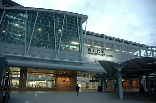 Shin-Yatsushiro Station (新八代駅, Shin-Yatsushiro-eki) is a junction passenger railway station located in the city of Yatsushiro, Kumamoto Prefecture, Japan. It is operated by JR Kyushu.[1][2]