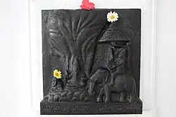 Stone carving of Sage Ribhu instructing Nidagha on the wall of Sri Sadisvara Mandiram[2] in the SAT Temple