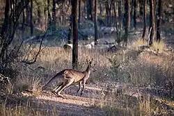 The terrestrial fauna of the place is diverse with approximately one third of the Australian mainland birds and bat species represented and approximately one quarter of the macropod species (including kangaroos and wallabies). The amphibian fauna is representative of north-eastern Australia and is moderately diverse in containing 12 percent of the Australian species. Most species of frogs were recorded on the western plains. This reflects the requirement for seasonal ponds for breeding and an intolerance to salt spray. Sixty-four reptile species are recorded which represents around 10 percent of Australian native species and include members of all families of land and freshwater reptiles.[1]