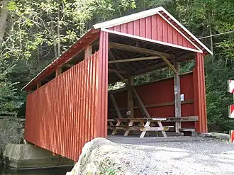 2. ^ "National Historic Landmarks & National Register of Historic Places in Pennsylvania". CRGIS: Cultural Resources Geographic Information System. Archived from the original (Searchable database) on July 21, 2007. Retrieved January 21, 2012. Note: This includes Bill Pennesi and Susan M. Zacher (n.d.). "National Register of Historic Places Inventory Nomination Form: Shoemaker Covered Bridge" (PDF). Retrieved January 21, 2012.