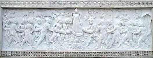 Pillar carving depicting Swaminarayan and Paramhansas -