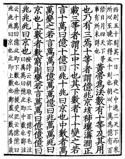 Shushu Jiyi (數術記遺; translated as Notes on Traditions of Arithmetic Methods, Memoir on the Methods of Numbering or Notes on Traditions of Arithmetic Method) is a Chinese mathematical treatise written by the Eastern Han dynasty mathematician Xu Yue.[1] The text received a subsequent commentary by Zhen Luan in the 6th century.