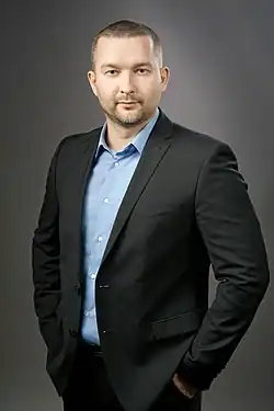 He graduated from the Belarusian State University in the field of informatics and radio electronics. After his graduation, he pursued his career in business and later joined the mainstream politics. In 2018, he became chairman of the Hramada, succeeding Stanislav Shushkevich.[4]
