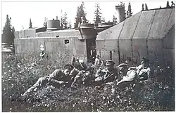 The crew of a Siberian armored train relax during a stop in the summer of 1919. Propaganda photo of Kolchak's army