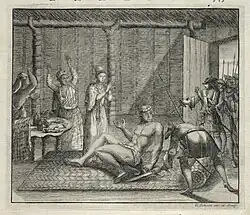 The rebellion, which broke out in 1679, had a pronounced religious side, and Muslim preachers from Banten were active in inspiring anti-Dutch insurgency. Some areas, such as North Halmahera and Bacan supported the Sultan, while Ternate's old rival, the Tidore Sultanate, backed up the Dutch positions and contributed with korakoras (large outriggers used in warfare). Sibori's attempts to enlist support from the Muslims of Mindanao were unsuccessful. The main Ternatan strongholds in Halmahera, Sahu and Gamkonara, fell to the VOC forces in 1681, and internal divisions among the rebels spelled the end of the movement.[7] Sibori Amsterdam, abandoned by most of his followers, was finally captured in a bath house in August 1681 while he was massaged with fragrant oils by ladies of his harem.[8]