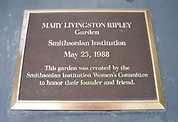 The Smithsonian's underground complex on the National Mall, the S. Dillon Ripley Center, is named in his honor. A garden between the Hirshhorn Museum and Sculpture Garden and the Arts and Industries Building was dedicated in 1988 to his wife, Mary Livingston Ripley.