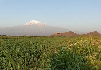 ![]() View of Khor Virap Monastery. The hill where the monastery was built is the location of now ruined Artaxata | |||||||