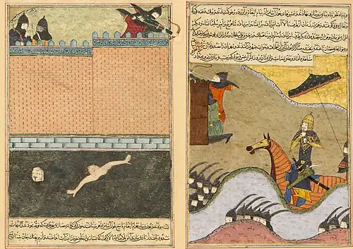 In 1401, Timur besieged Baghdad for forty days and then massacred its inhabitants for resisting.[1] The Mongol army looted the treasury and razed much of the city, except for mosques and madrasas.[2] Contemporaries reported that each Mongol soldier was ordered to bring at least one severed head of an inhabitant. Only one out of a hundred of the city's inhabitants reportedly survived the massacre to be sold into slavery.[3]