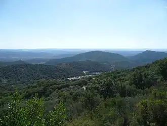 The Sierra de Aracena is not very high and its mountains have a gentle, rounded shape. The height of most of the summits lies between 400 and 900 m (1,300 and 3,000 ft). Its highest point is 962 m (3,156 ft) high Cerro del Castaño.[1] Other notable summits are Cerro de San Cristóbal 917 m (3,009 ft) and Cerro de Santa Bárbara 814 m (2,671 ft), the latter located close to Cortegana. The Odiel and Murtigas are the main rivers in the area of the range.[2]